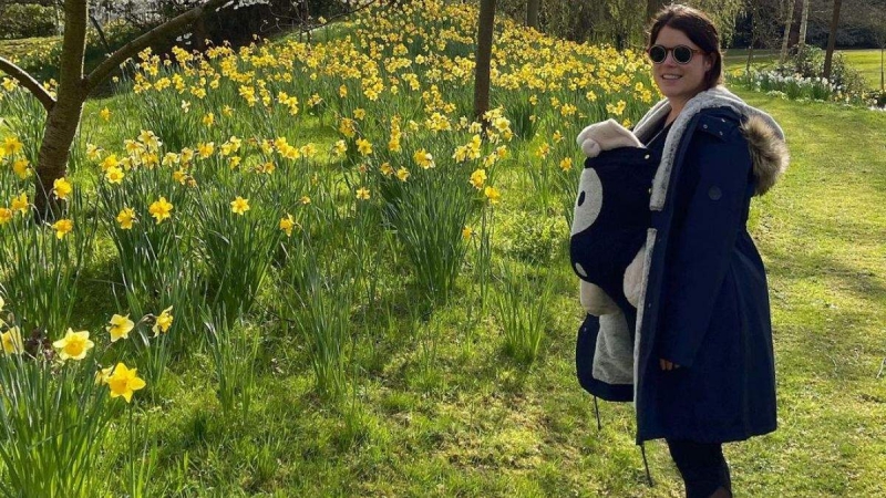 На фотографии, которую Евгения на днях обнародовала в сети, она позирует в парке на лужайке возле невероятно красивых цветов желтого цвета. Маленького Августа королевская наследница держала в рюкзаке-кенгуру. Малыш был одет в теплый костюм медвежонка.